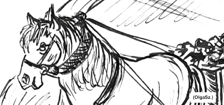 Pojednou škub..., vozy zaskřípaly brzděním koně. Floček bez pokynu zastavil. Bez pohnutí stojí, nedbá domluvného pobízení udiveného pacholka. Po celý čas obapolně kamarádského soužití Floček nevypověděl poslušnost; co přimělo jej k svévolnému zastavení? Koňská jankovitost?